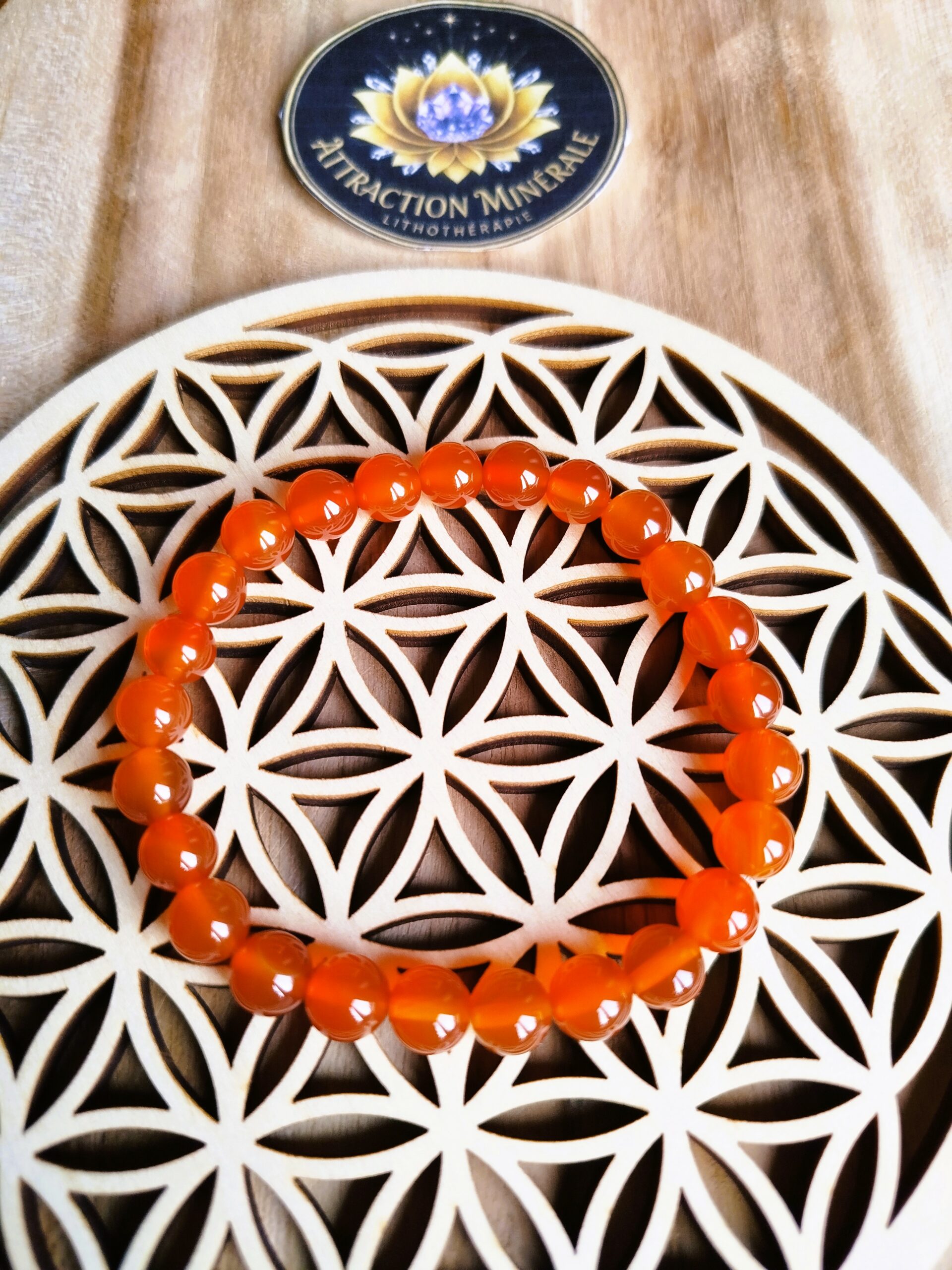 Véritable concentré de soleil, ce bracelet en Cornaline est la pierre de l’action et de la confiance en soi. Ses nuances orangées, évoquant un coucher de soleil flamboyant, boostent votre créativité et dissipent les nuages de la colère. C’est l’allié parfait pour ceux qui osent s’affirmer et transformer leurs idées en projets concrets.
